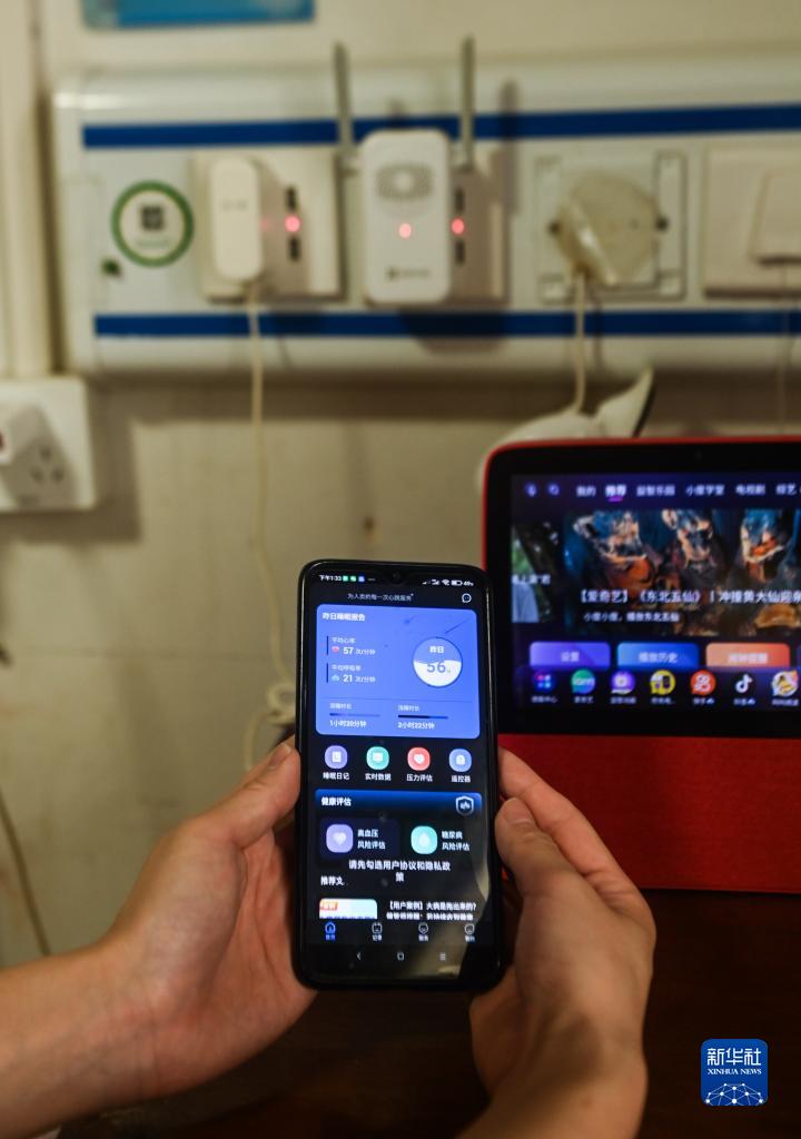 6月15日,家庭医生展示通过床上的智能传感器采集的嘉兴市秀洲区新塍镇蓬莱社区的83岁独居老人孙志龙的睡眠质量数据。