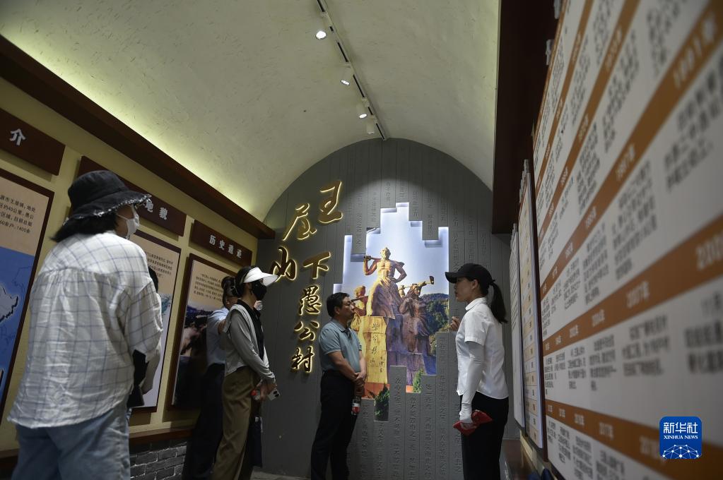 6月15日,游人在王屋山脚下的愚公村村史馆里参观。
