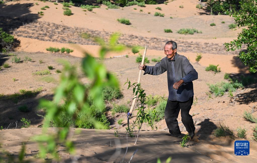 内蒙古鄂托克前旗城川镇呼和陶勒盖嘎查地处毛乌素沙地腹地,这里曾经风沙肆虐,当地的农牧民深受其害。从1958年开始,16岁的曹扎娃便跟着父辈们一起种树治沙,成为种树能手。