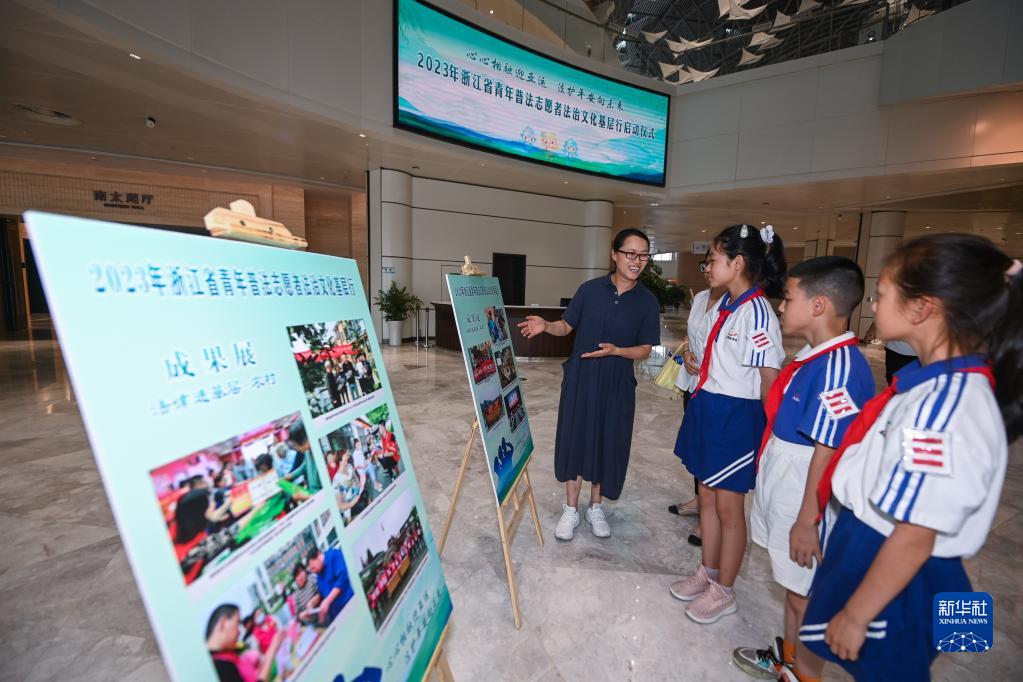 当日,在浙江省德清县地理信息小镇德清国际会议中心,以“心心相融迎亚运 法护平安向未来”为主题的浙江省“2023年青年普法志愿者法治文化基层行”正式启动。启动仪式现场,德清县各乡镇、街道多部门的青年普法志愿者进行宣誓,现场还举行了法治游园会等系列普法活动。