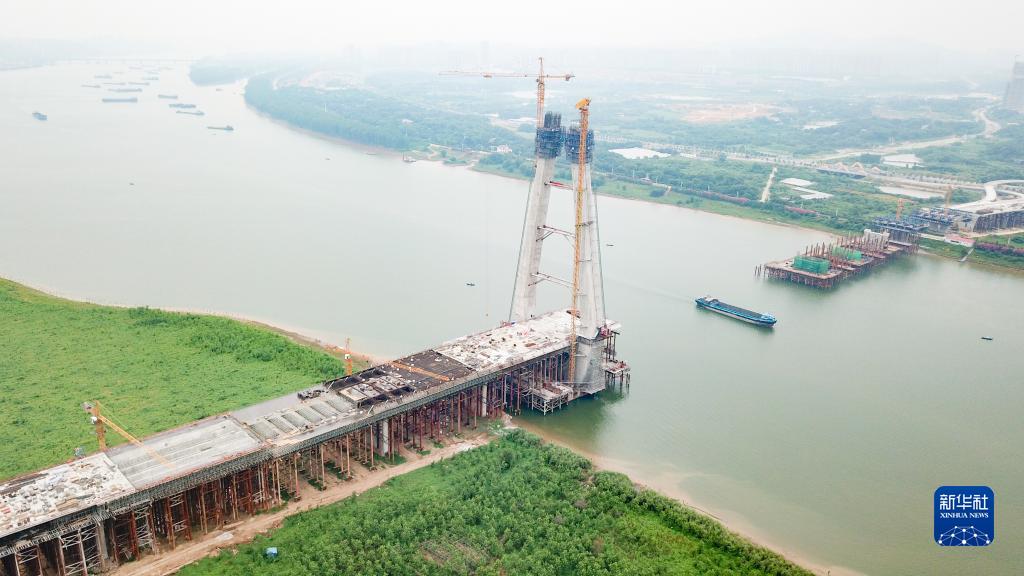 这是6月16日拍摄的香炉洲大桥项目建设现场(无人机照片)。