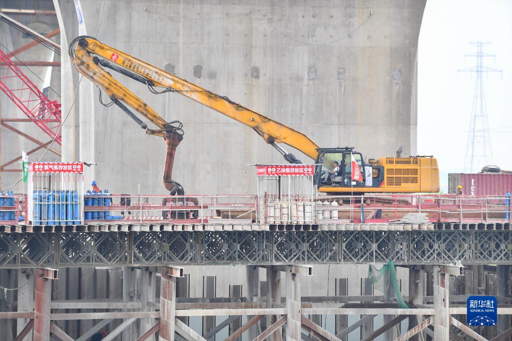 这是6月16日拍摄的香炉洲大桥项目建设现场。