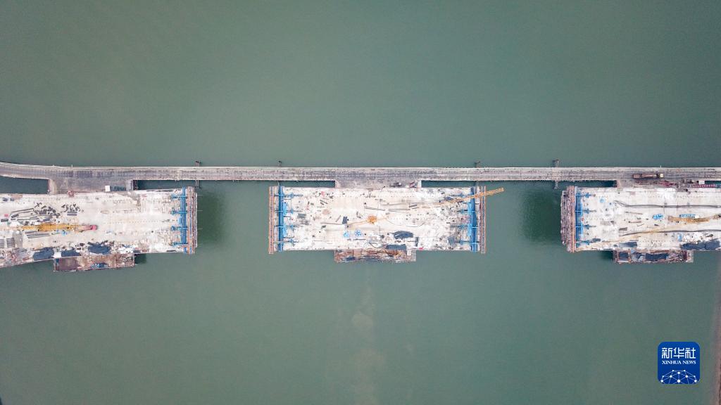 这是6月16日拍摄的香炉洲大桥项目建设现场(无人机照片)。