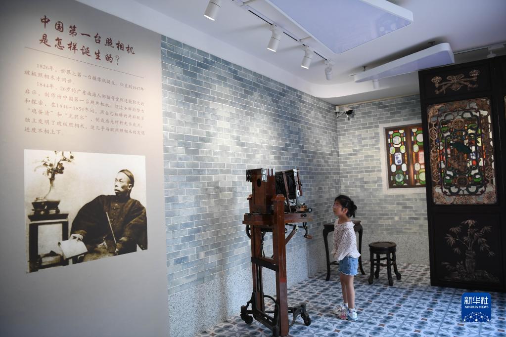6月13日,小朋友在广州博物馆里观看“中国照相机之父”邹伯奇的有关介绍。