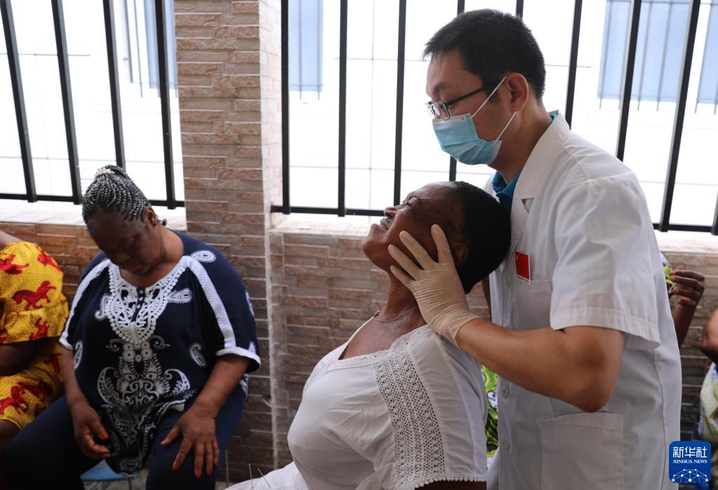 6月14日,在赤道几内亚首都马拉博的马拉博地区医院,中国医疗队骨科医生吴培玉为病人治疗。