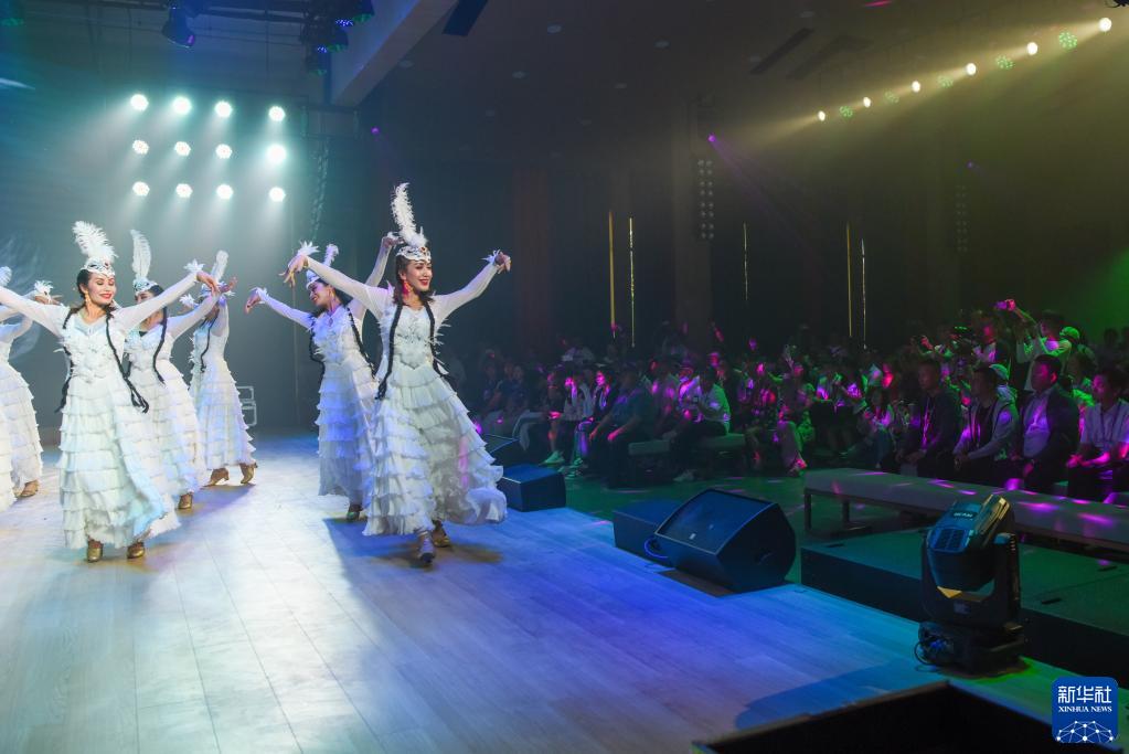 在新疆霍城县惠远古城,游客欣赏歌舞表演(6月16日摄)。