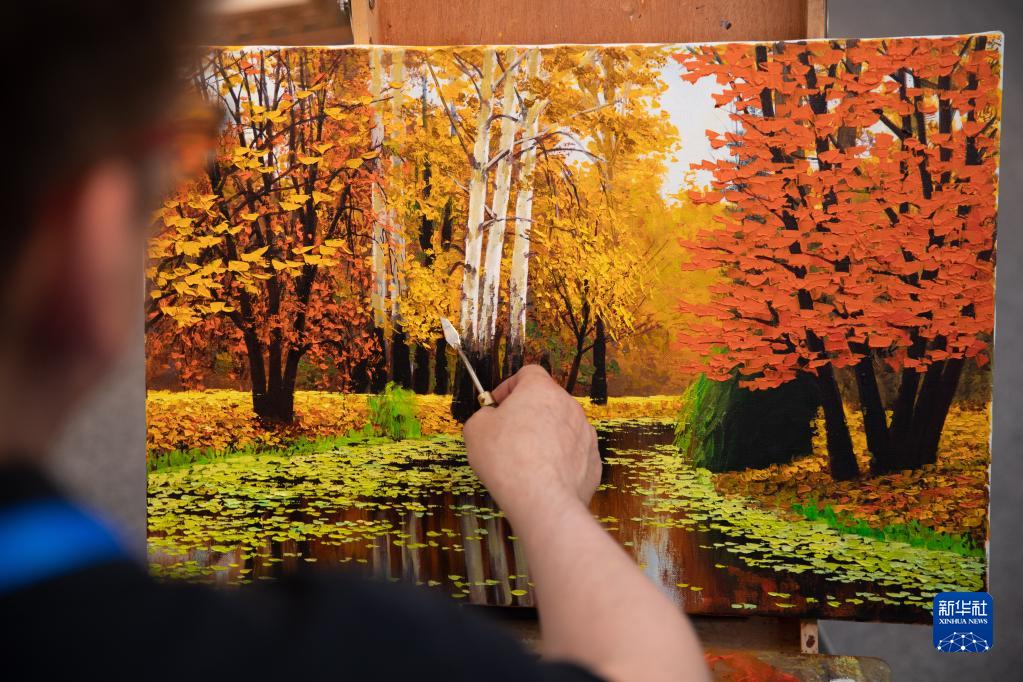 6月16日,俄罗斯画家瓦西里在现场绘画。