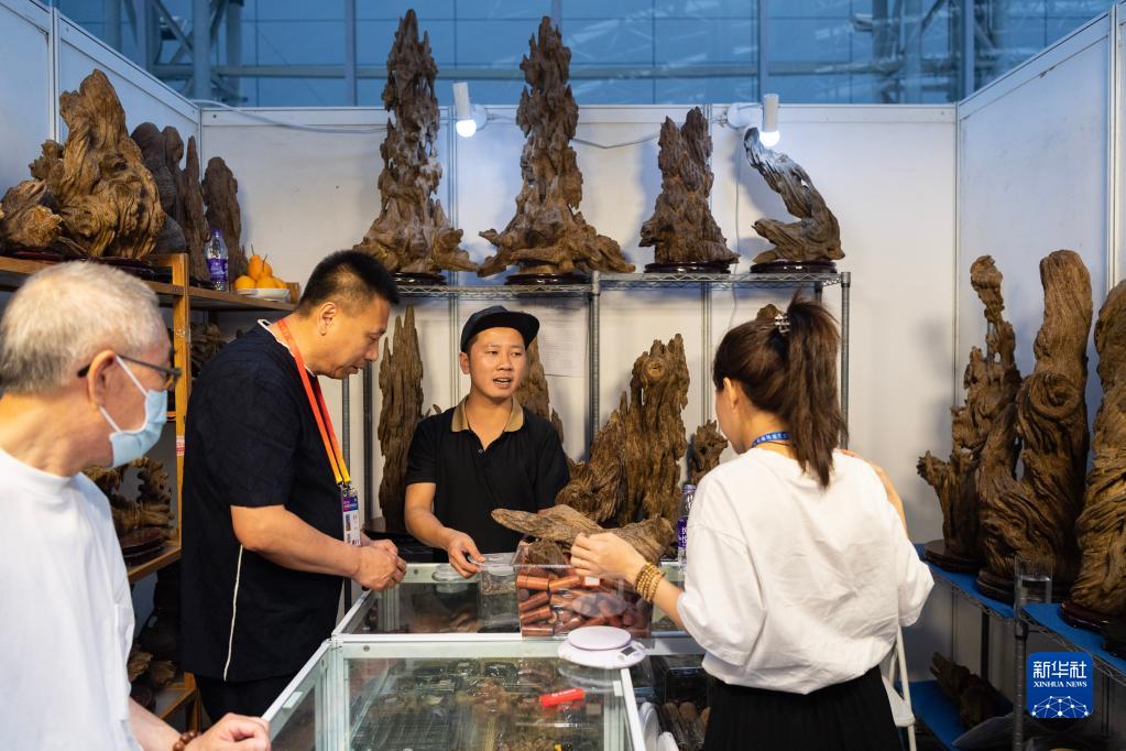 6月17日,与会者查看产自越南的沉香制品。