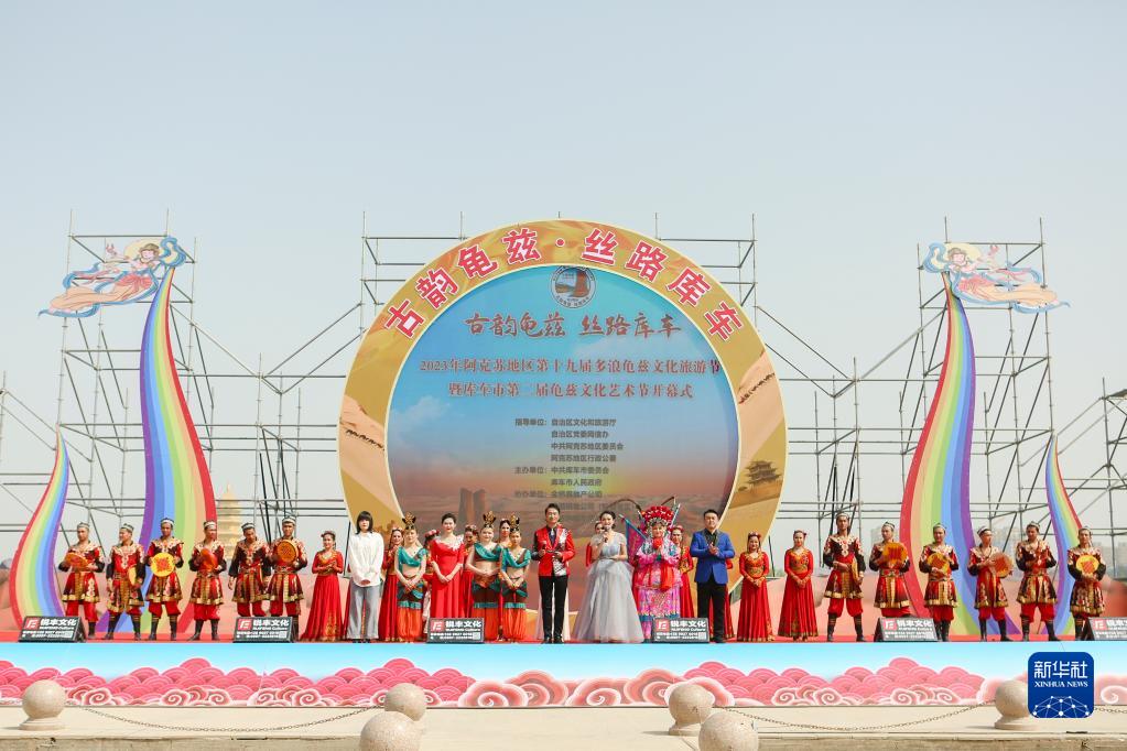 当日,2023年阿克苏地区第十九届多浪龟兹文化旅游节暨库车市第二届龟兹文化艺术节开幕式在新疆阿克苏地区库车市东湖广场举行。