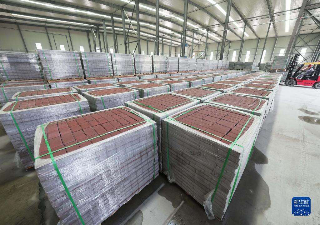 6月17日,工人在秦皇岛市抚宁区一家新型路面材料企业的成品车间工作。