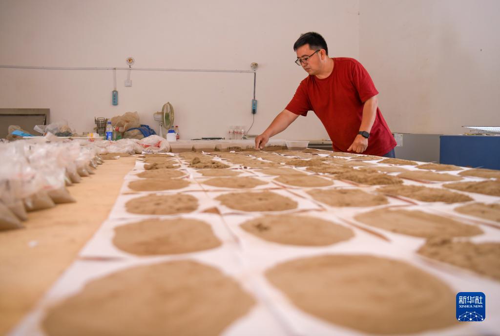 在中科院新疆生态与地理研究所策勒沙漠研究站,买尔当在查看分析土壤样本(6月13日摄)。新华社记者 王菲 摄