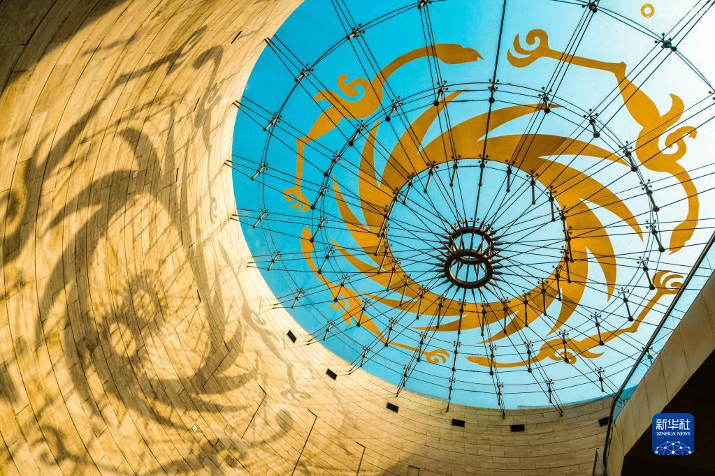 阳光透过成都金沙遗址博物馆陈列馆穹顶(3月10日摄)。