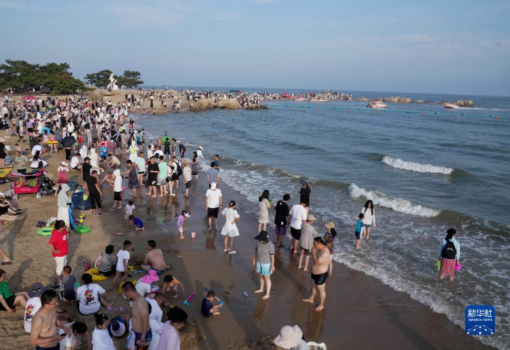 近日,部分省市遭遇高温天气,大批游客来到避暑胜地——河北省秦皇岛市北戴河区,在各个景区、浴场休闲避暑。