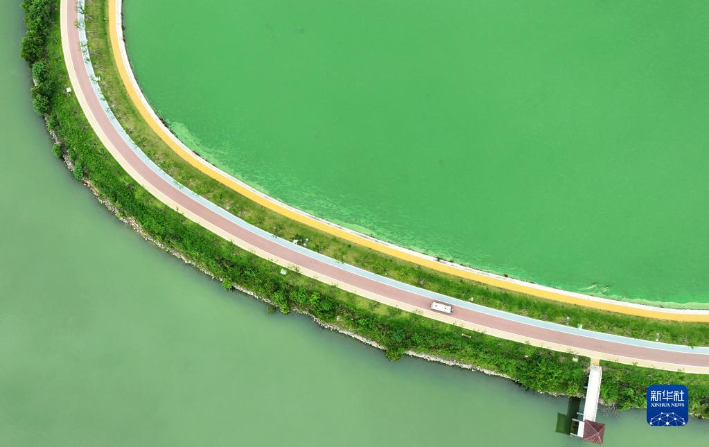 由中铁四局修复建设的九江市赛城湖绿道(6月15日摄,无人机照片)。