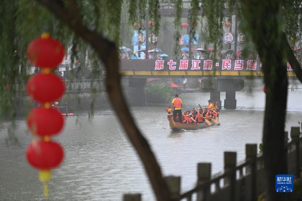 当日,浙江省湖州市“我们的节日·端午”暨第七届江南·民当端午民俗文化旅游节在南浔区和孚镇民当村开幕,来自南浔区各个乡镇的农民选手在河道中赛龙舟、划菱桶,体验传统端午民俗。