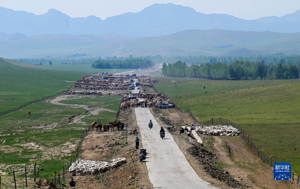 6月15日,内蒙古赤峰市阿鲁科尔沁旗2000余户牧民赶着14.6万头牲畜从定居点出发,前往水草丰美的夏营地进行转场。这是当地牧民一直延续下来的沿河迁徙、逐水草而居的游牧传统。