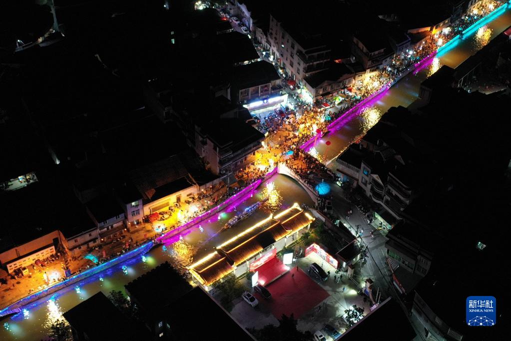 6月17日晚,在福建省福州市长乐区三溪村,数十艘龙舟在小溪中竞渡,南溪两岸及石桥上人潮如涌,热闹非凡。夜赛龙舟是福建福州长乐区三溪村独有的端午习俗,已经沿袭600多年。每年端午节前后,当地村民举行夜赛龙舟活动,借此祈盼风调雨顺、平安健康。