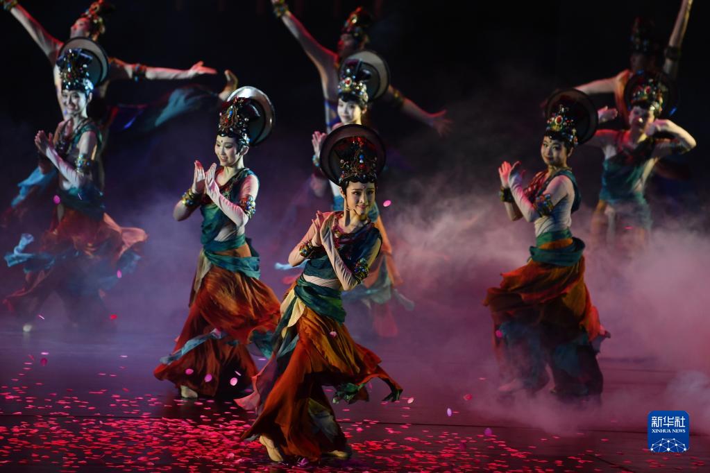 中国残疾人艺术团演员在敦煌大剧院表演大型情景音画剧《千手千眼》(6月18日摄)。