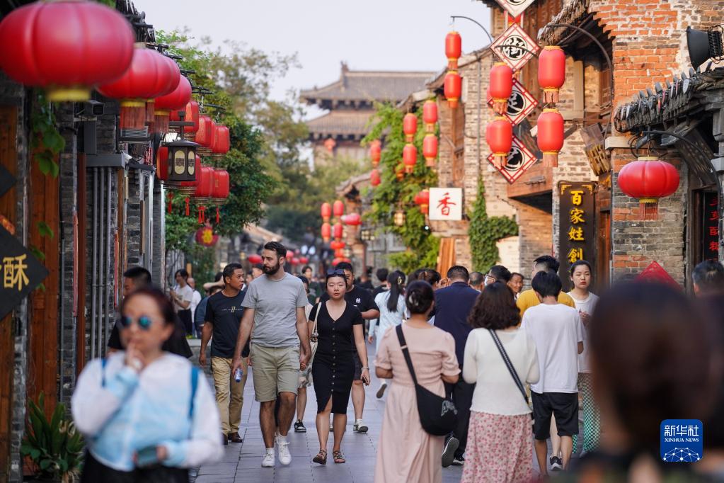 游客在扬州东关街休闲游玩(6月14日摄)。