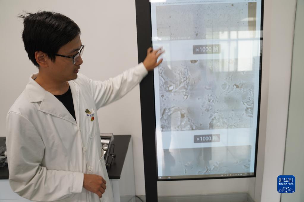 在景德镇御窑博物院,工作人员在展示瓷片标本的配方研究数据(5月16日摄)。