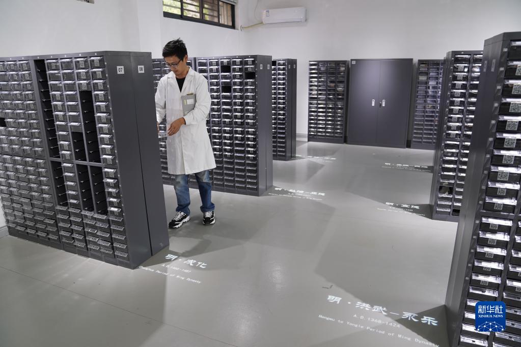 在景德镇御窑博物院,工作人员在古陶瓷基因库里工作(5月16日摄)。