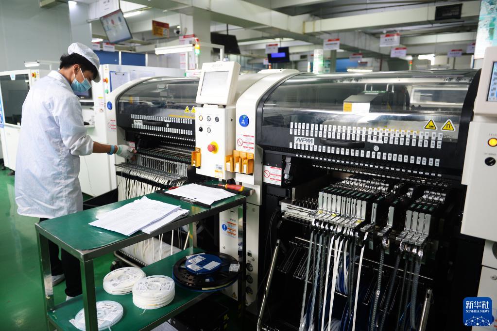 6月19日,漳州科华电气技术有限公司工作人员在智能化车间生产电路板设备。