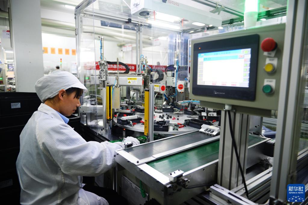 6月19日,漳州科华电气技术有限公司工作人员在智能化车间生产电路板设备。