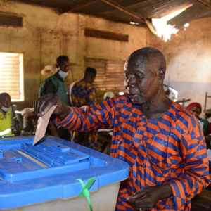 6月18日,选民在马里首都巴马科一处投票站参加宪法公投投票。