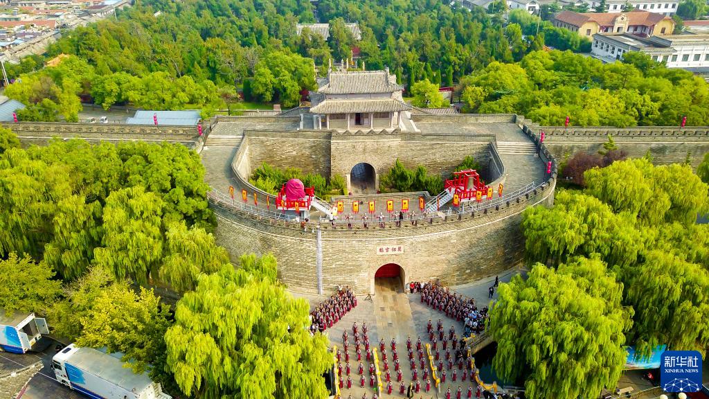 这是2020年9月26日在山东曲阜拍摄的孔庙万仞宫墙(无人机照片)。
