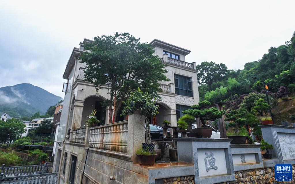 这是金华市金东区赤松镇大源村,村民家门口都摆放着特色盆景(6月20日摄)。