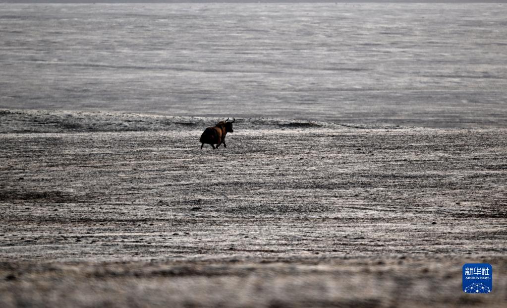 一头野牦牛在可可西里卓乃湖区域活动(6月18日摄)。