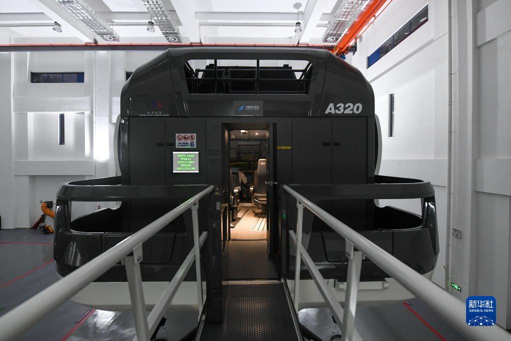 在广东珠海翔翼飞行训练中心,飞行员进入模拟机中准备开展训练(6月13日摄)。