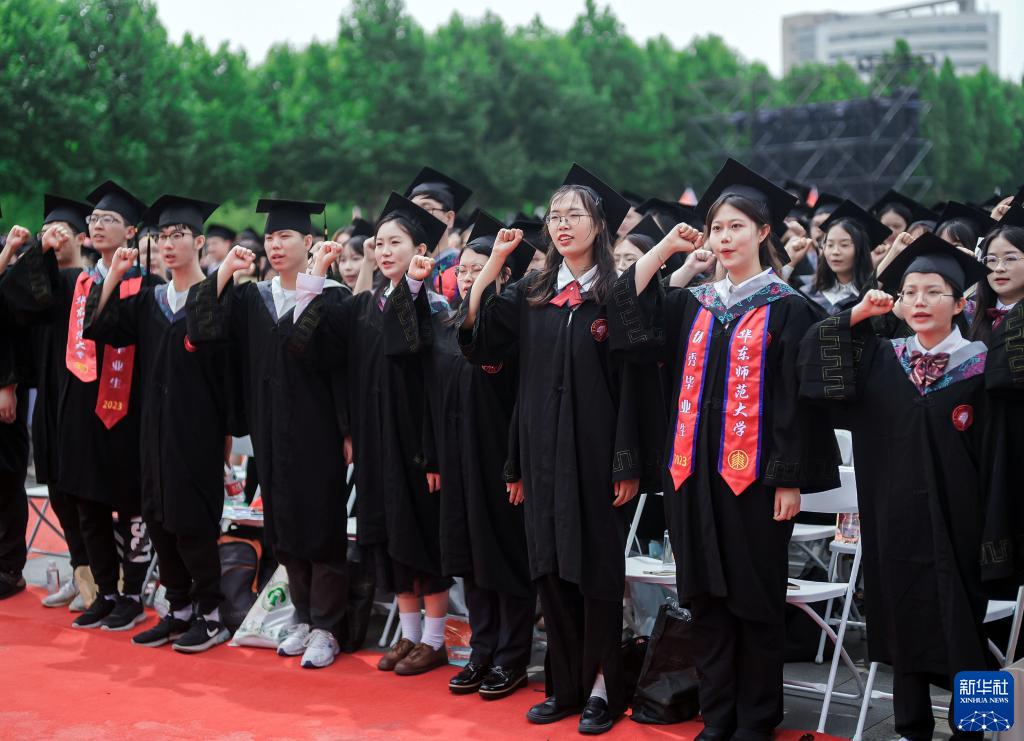 6月20日,在华东师范大学2023届毕业典礼上,师范类专业毕业生进行未来教师宣誓。