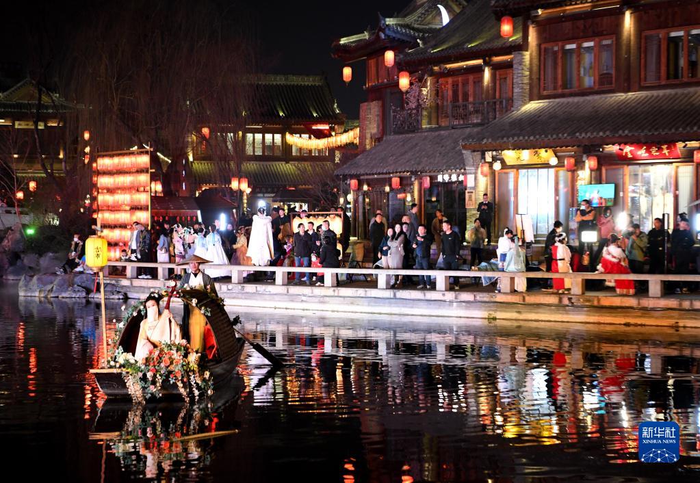 游客在洛阳市洛邑古城游玩(2023年2月28日摄)。