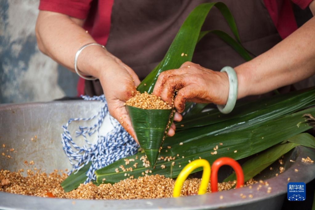 宋人欧阳修的《渔家傲》描绘出端午佳节的热闹景象,“五色新丝缠角粽”,包粽子是我国重要的端午习俗。人们包粽子、迎佳节,神州处处飘粽香。
