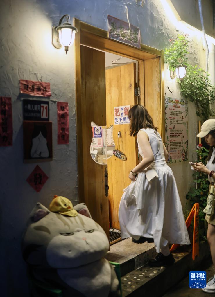 顾客进入“鼓捣猫呢”的大门(6月19日摄)。