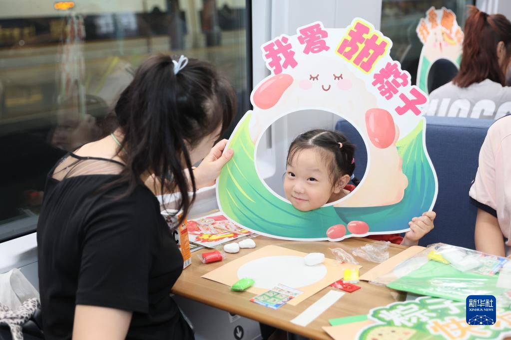 端午节前夕,铁路上海客运段在列车上邀请旅客参加端午民俗活动,迎接端午佳节。