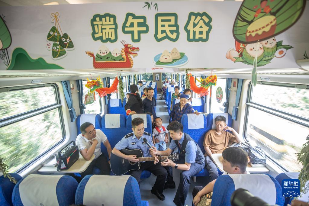 据介绍,从即日起至端午小长假结束,中国铁路成都局集团有限公司、重庆铁路公安处、桐梓县文化旅游局将联合在遵义往返重庆西的5630\5629次列车上打造“端午集市”“民俗体验”车厢,供旅客在节日期间打卡游玩,感受传统民俗。