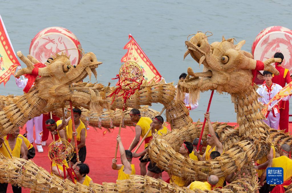 6月21日,演员在四川省乐山市夹江县表演国家级非物质文化遗产——沐川草龙。