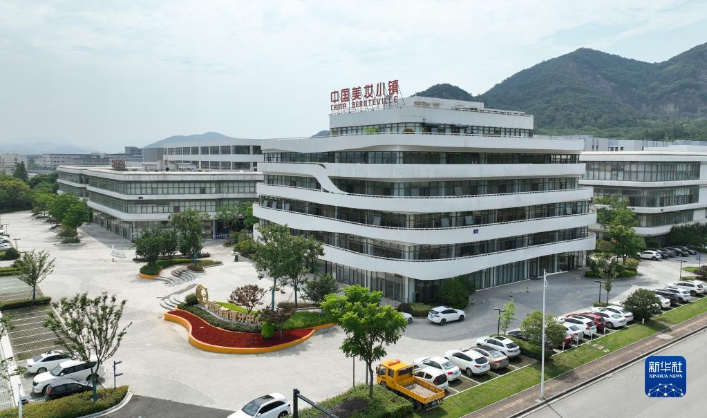 鸟瞰埭溪镇美妆小镇(无人机照片,6月21日摄)。
