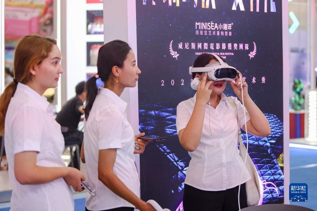6月21日,参观者在喀什国际会展中心体验VR设备。
