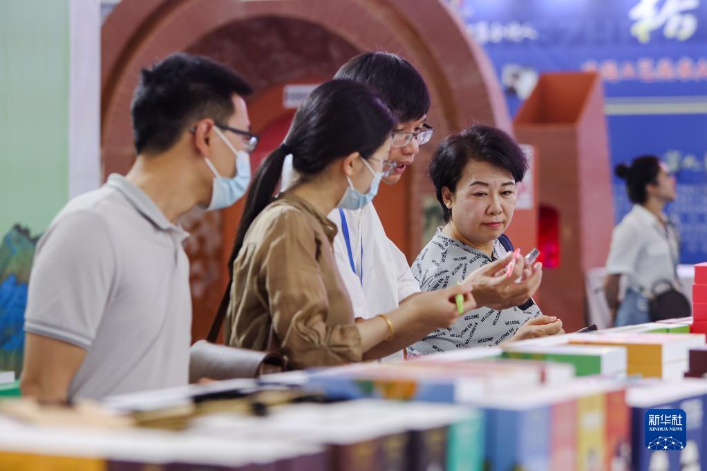 6月21日,参观者在喀什国际会展中心参观文创产品。