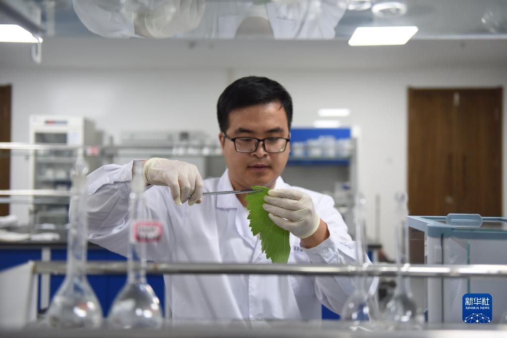 6月21日,在位于河北省怀来县的河北省葡萄产业技术研究院,来自天津农学院的研究生韩亚奇正在分析葡萄叶的健康状况。