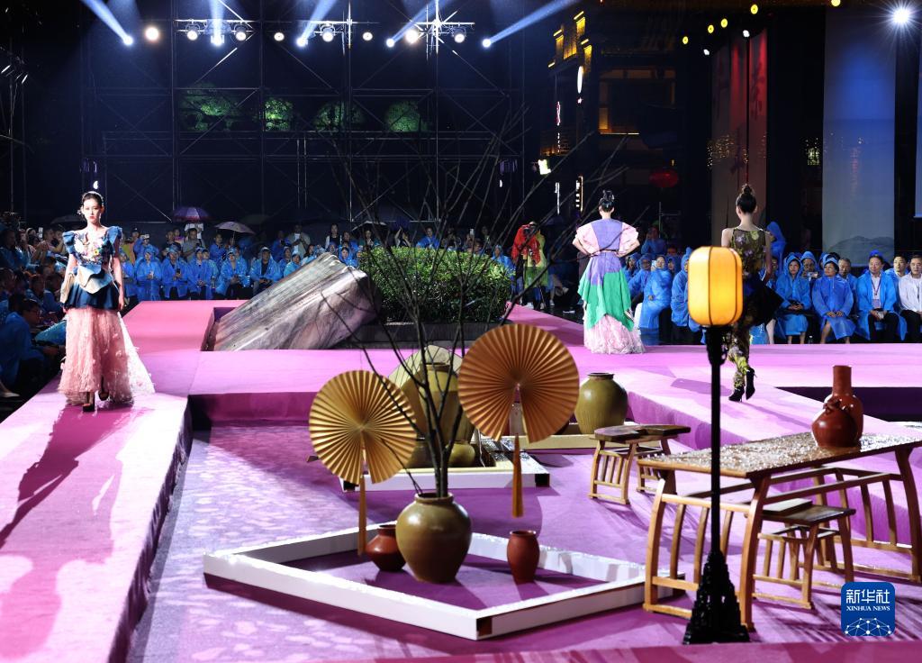 当日,2023重庆国际时装周荣昌非遗之夜活动在重庆市荣昌区夏布小镇举行。该活动通过非遗时尚秀、静态展示等形式呈现国家级非物质文化遗产——荣昌折扇和荣昌夏布的魅力,迎接中国传统节日端午节的到来。