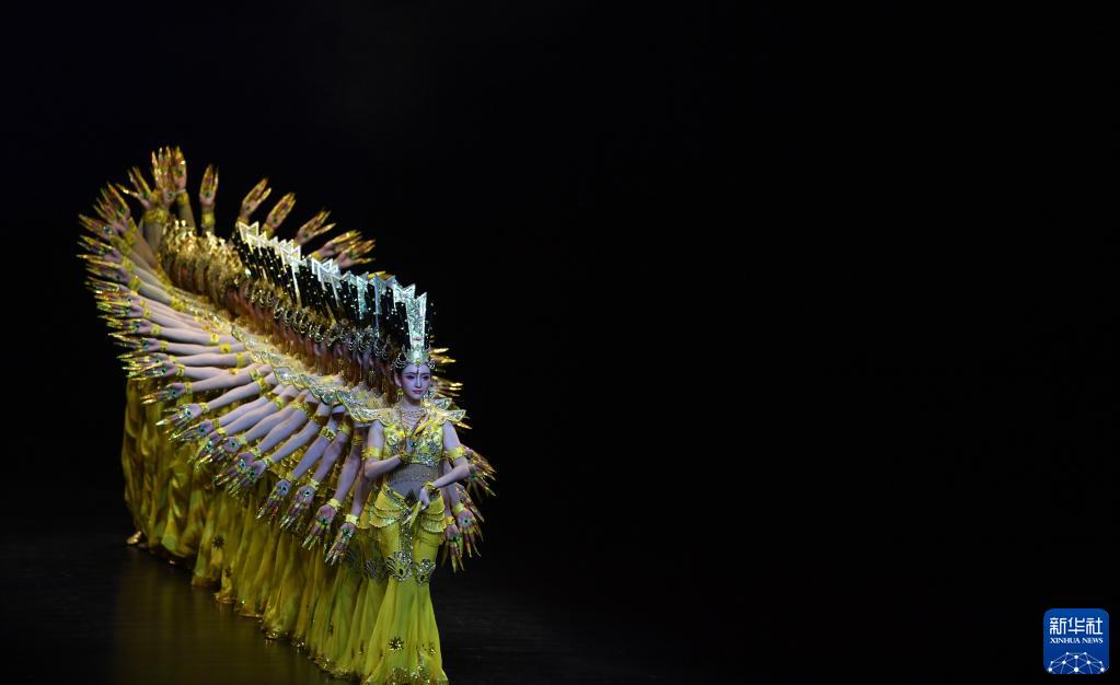 中国残疾人艺术团演员在敦煌大剧院表演大型情景音画剧《千手千眼》(6月18日摄)。