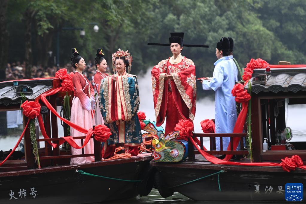 6月22日,一场水乡婚礼在杭州西溪国家湿地公园上演。