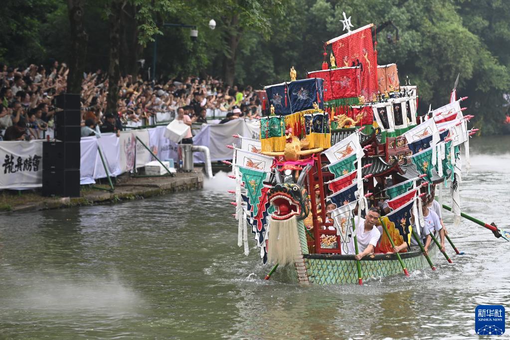 6月22日,村民在杭州西溪国家湿地公园的蒋村龙舟胜会上划龙舟。蒋村龙舟胜会于2011年被列入国家级非物质文化遗产名录。