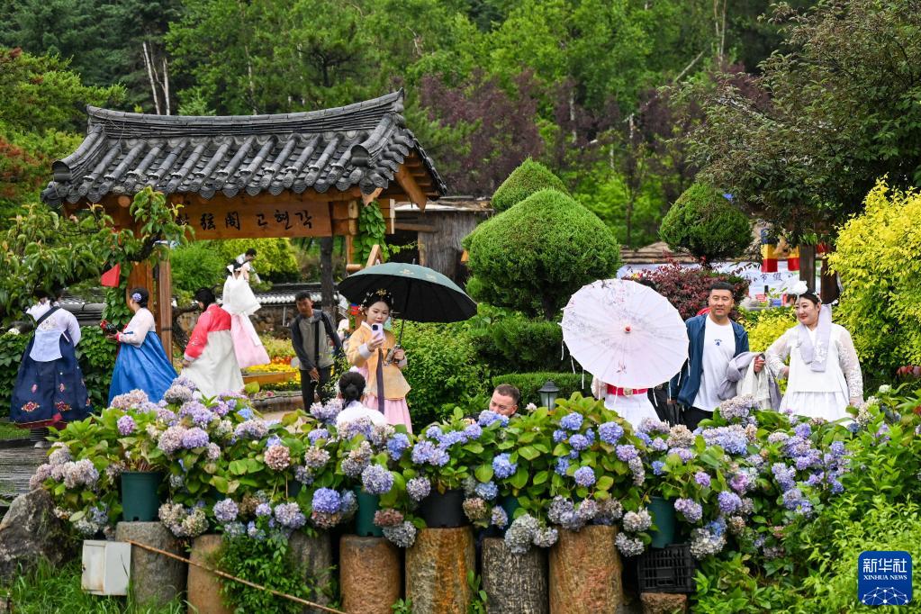6月22日,游客在位于吉林省延边朝鲜族自治州延吉市的中国朝鲜族民俗园游览。
