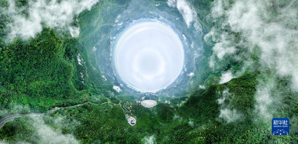 6月22日拍摄的“中国天眼”全景(维护保养期间拍摄,无人机全景拼接照片)。