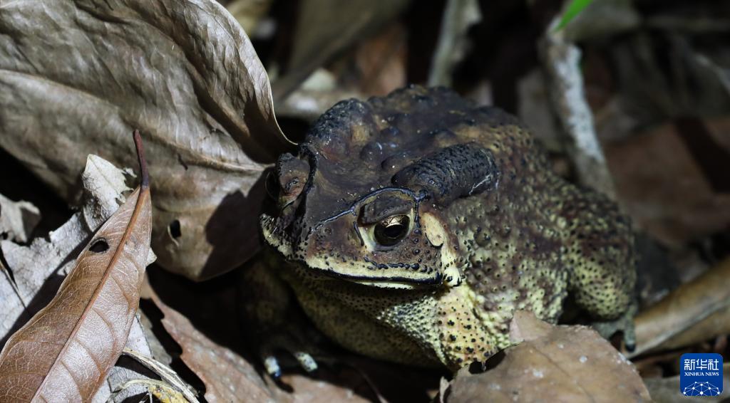 这是在海南热带雨林国家公园吊罗山片区拍摄的黑眶蟾蜍(6月14日摄)。